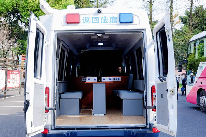3月20日,“E法同业”世界蚁集法治主题宣传行为采访团来到峨眉山旅游环保法庭,一进院内,就看到一辆车上写着的“巡回法庭”四个字,法庭看着不大,关联词和法院的审判庭相通,原被告、审判员等位置一应俱全。现场职责主谈主员先容,这辆车是不错上山开庭,最大罢休浅薄搭客。