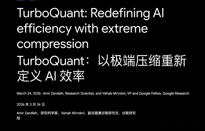 3月下旬,Google Research公拓荒布了一项名为TurboQuant的新时间。