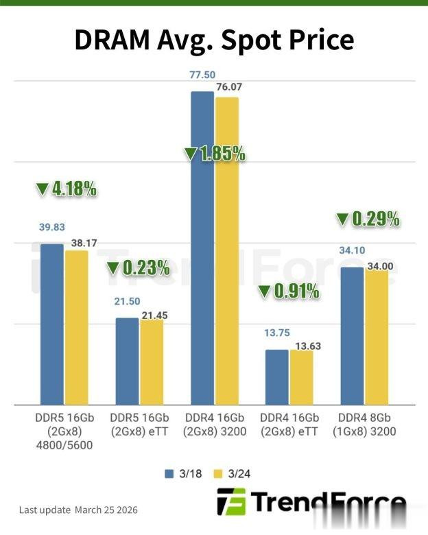 凭证TrendForce在3月25日的最新追踪求教,DRAM现货市集的上行动能确乎受到了逝世,其中DDR4的发扬最为疲软。
