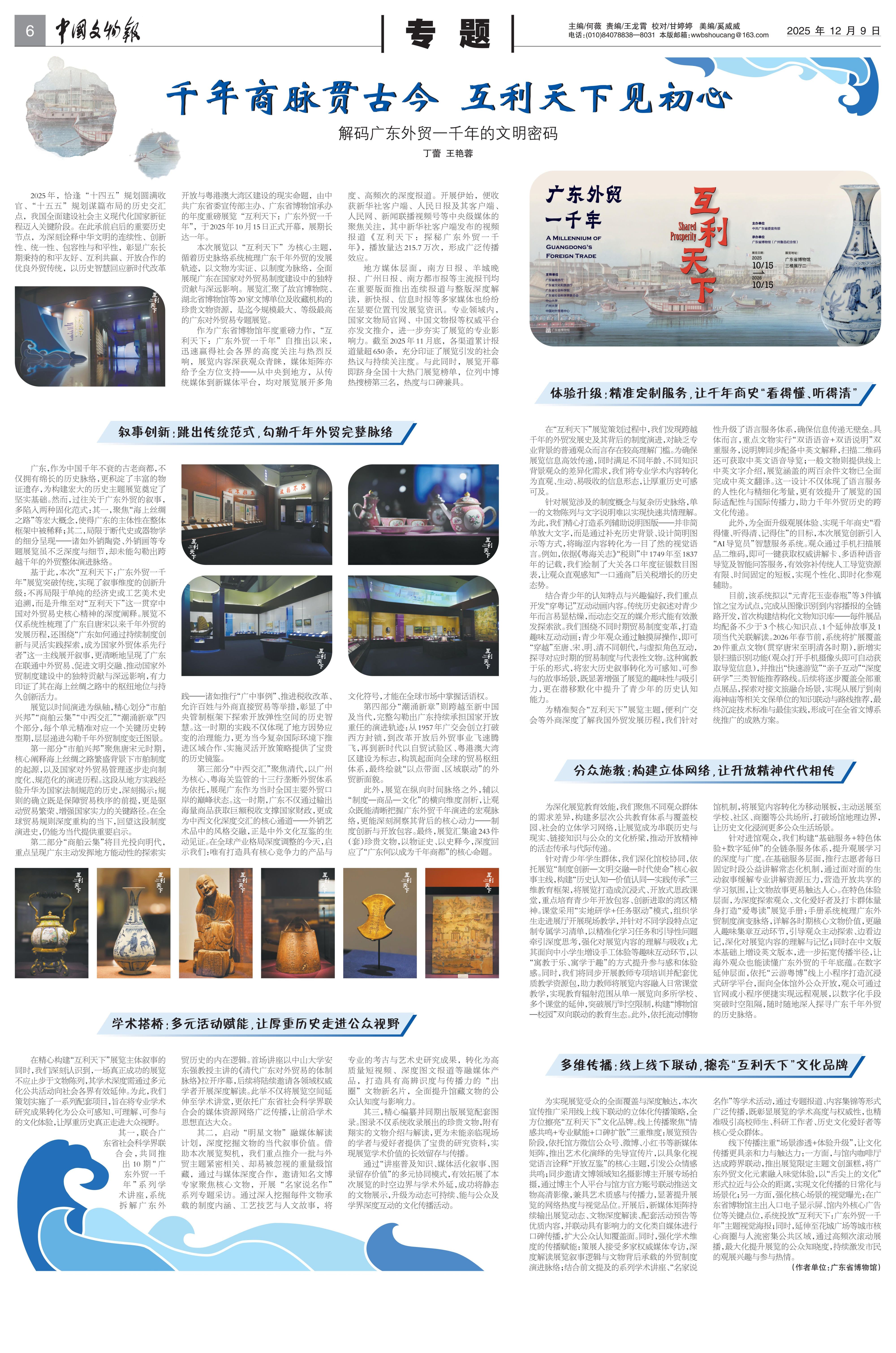 由中共广东省委宣传部摆布、广东省博物馆经办的“互利天地:广东外贸一千年”展览,是2025年度省委宣传部要点打造的大型原创展览容颜。自2025年10月15日开幕以来,该展览凭借其深厚的历史文化内涵与高大的叙事形态,速即引起社会各界的高度关怀。死心2月2日,展览共眩惑向上30万东说念主次到场参不雅,新媒体话题量约300万。