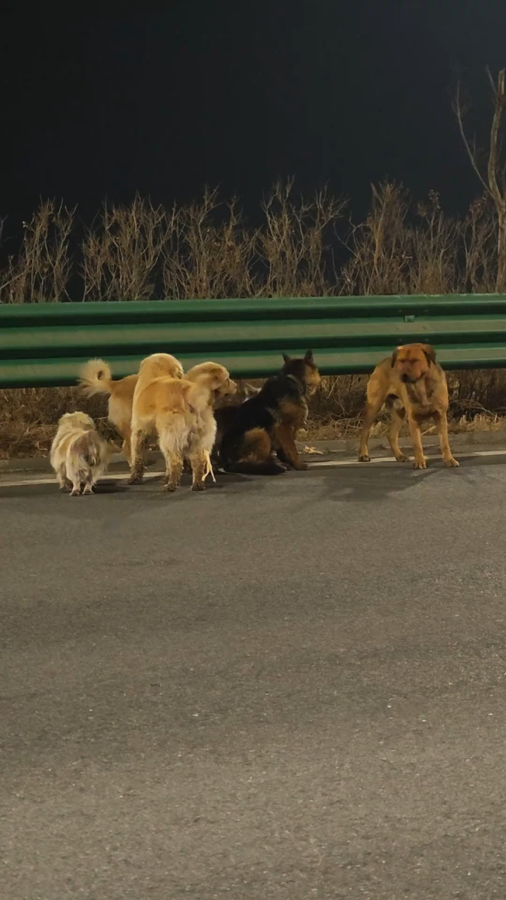 长双快速路边的7只狗(视频截图)