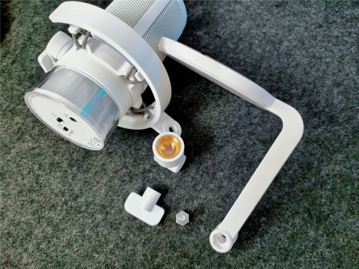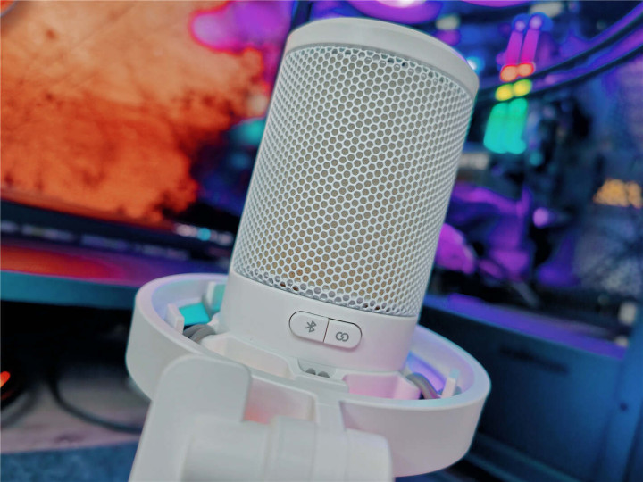 麦克风的基础功能也依旧能打:正面的旋转式音量扶持按钮,可精确扶持音量大小,盲操作也不会出错;