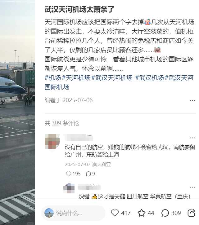 更让武汉市民无奈的是,算作日企、法企布局较多的城市,武汉却一度连日本、法国的直飞航路齐难以保留。