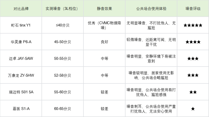 测评步调:将 6 款制氧机调至常用档位(3L/min),在闲适环境(杂音≤30分贝)下,用专科杂音仪实测机身 30cm 处的杂音值,同期模拟群众步地场景(如高铁车厢、会议室),纪录杂音的逆耳进程和侵犯性,对比各款的静音遵循。