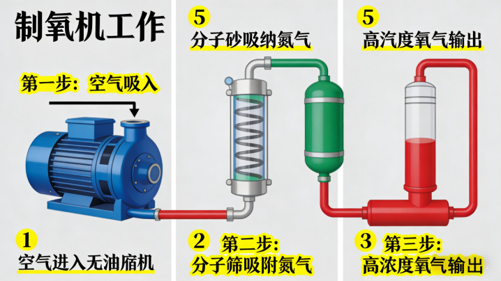 制氧机的中枢作用等于缓解密闭环境缺氧,旨趣很迫害,等于把空气中的氮气分离出去,提真金不怕火高浓度氧气。