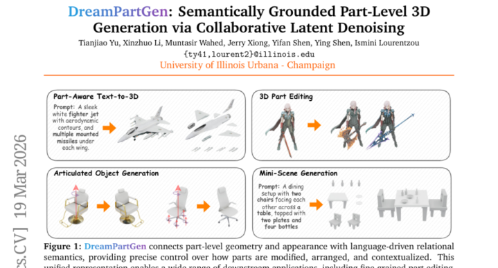 这项由伊利诺伊大学厄巴纳-香槟分校指导的冲破性筹谋发表于2026年,筹谋团队开荒了一种名为DreamPartGen的全新AI系统,大致像警戒丰富的工匠通常,相连翰墨表情并创造出由多个独处部件构成的3D物体。有酷好深入了解的读者不错通过论文编号arXiv:2603.19216v1查询完整论文。