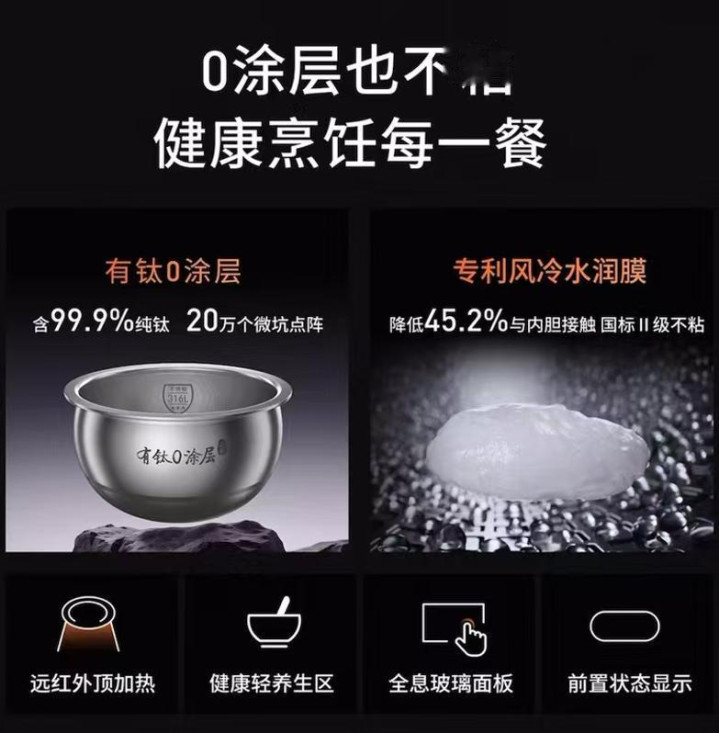 要是你家最常见的需求是:米饭别飘、粥别溢、内胆材质要省心——好意思的这套“均匀加热 + 稳沸 + 纯钛0涂层”组合就很对症。