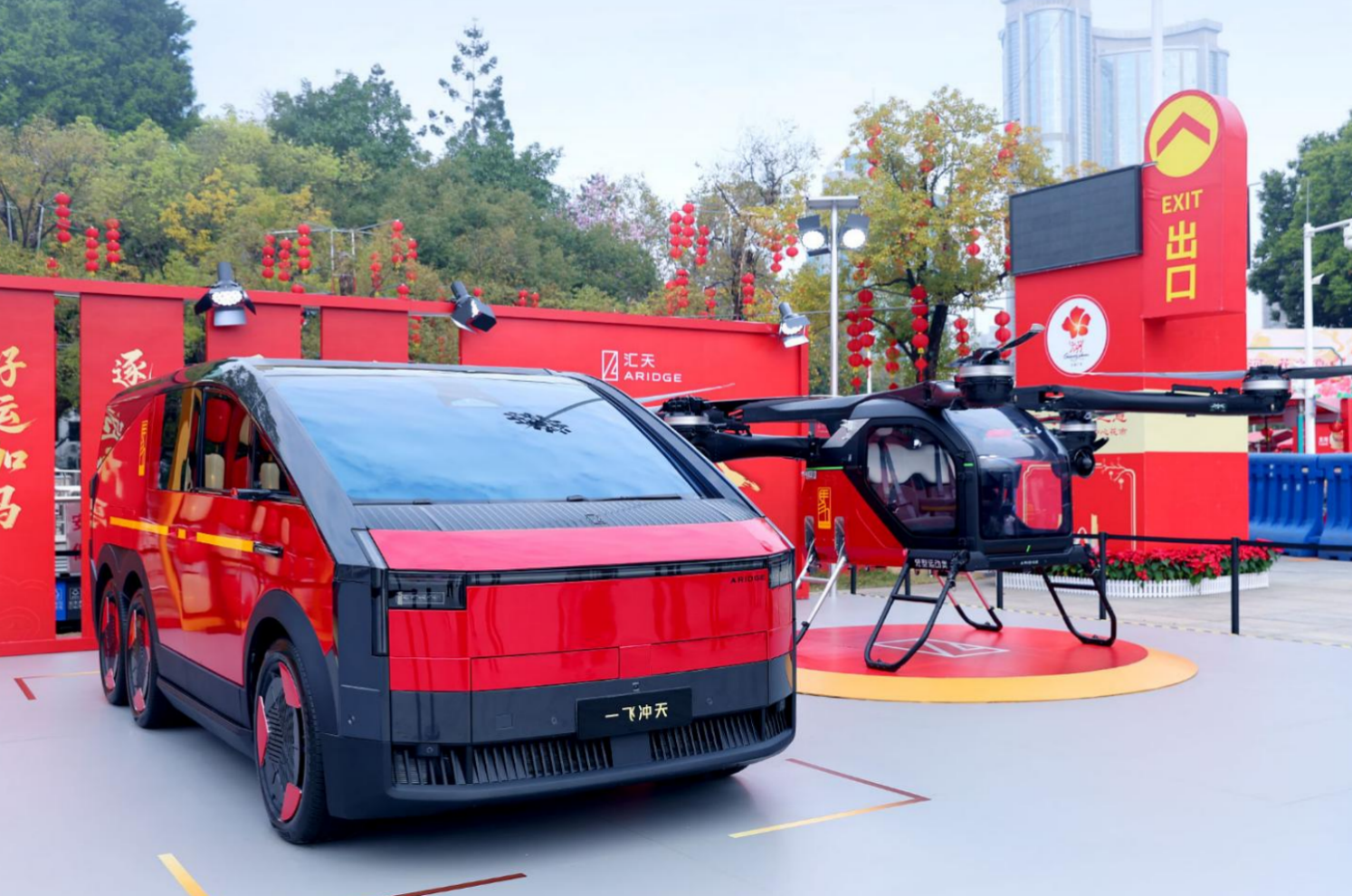 据悉,汇天受河汉区政府邀请,带来这款行家首款分心色翱游汽车,它以新春限度涂装惊艳亮相,亦然低空经济元素初度进驻广州传统花市,以“科技+年俗”的改变交融为千年花市注入将来感,机动解释“广货行天地”在新期间的内涵与外延。