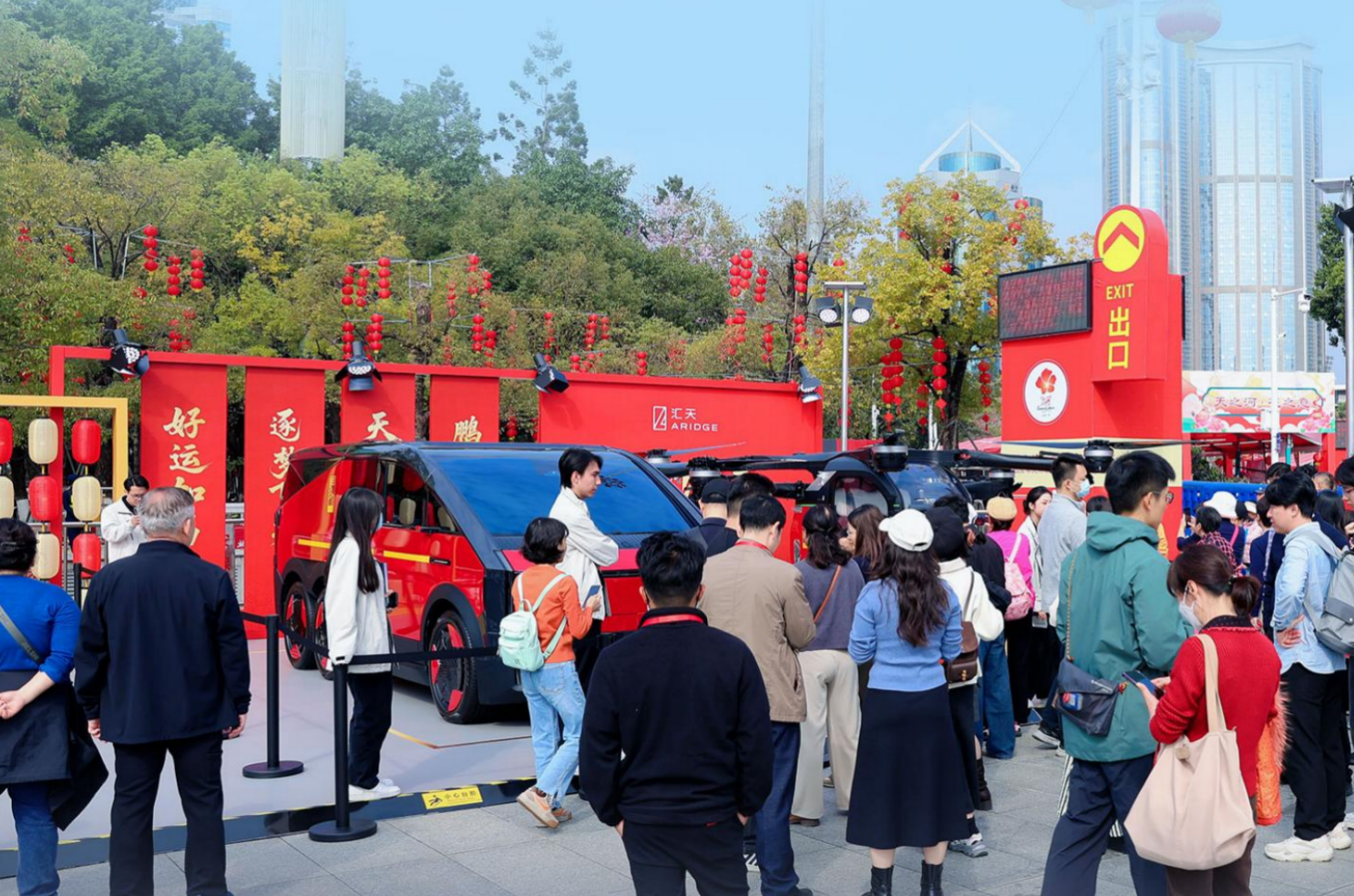 新春将至,广州河汉迎春花市开市首日,河汉体育中心现场东谈主头攒动。与往年不同的是,本年的花市不仅有五彩纷呈的年花年桔,更迎来了迥殊的“科技年货”——小鹏汇天陆地航母翱游汽车。