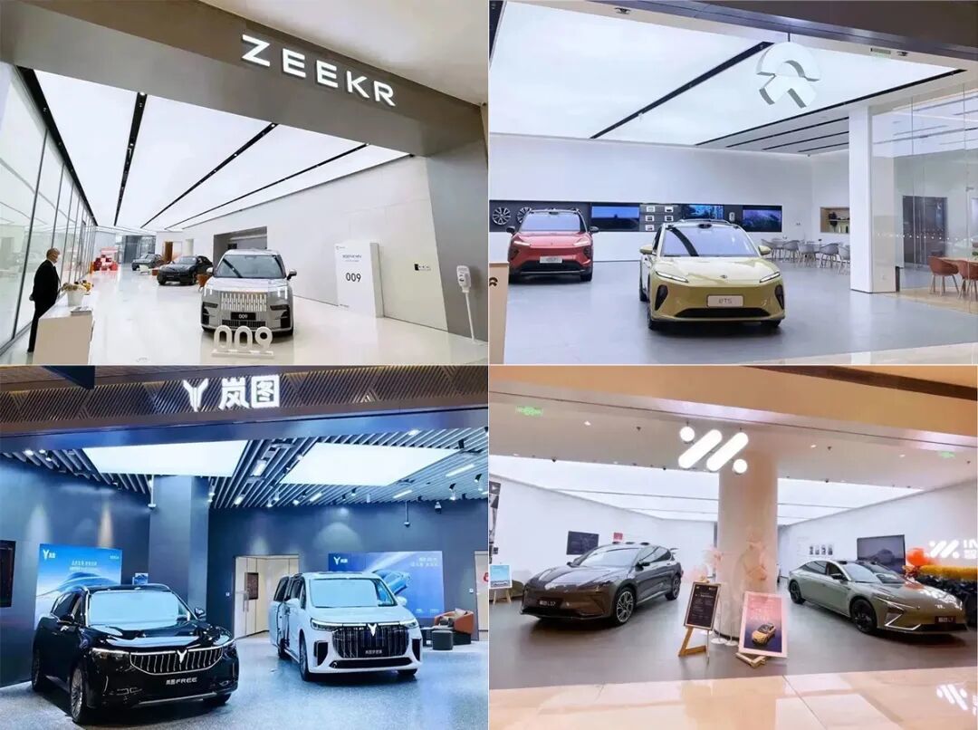 到2023年8月,寰球新动力汽车商超店超5000家,漫步在247个城市的超2200个购物中心里,入驻了5家或更多新动力汽车品牌的购物中心达300家。