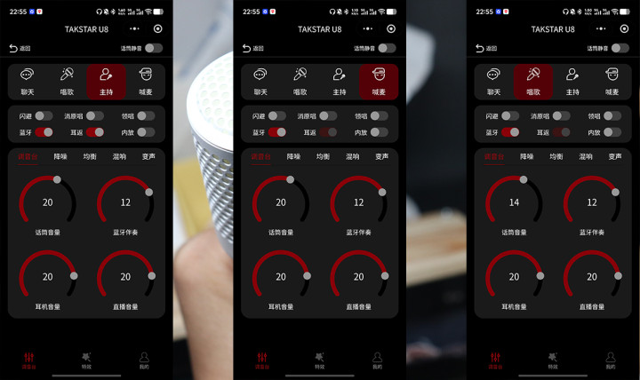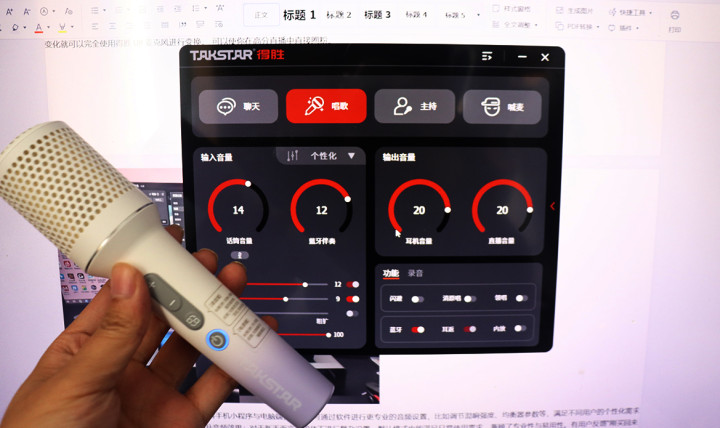 它预设了两大中枢模式:聊天模式和唱歌模式,通过电源键就能一键切换。带货直播的时候用聊天模式,东说念主声显豁聚焦,莫得过剩的混响,不雅众能清澄澈爽听到你讲的产物卖点,不会因为音效无极了中枢信息;休息破绽念念唱歌互动,一键切换到唱歌模式,内置了多种专科混响模式,还复古混响音量颓唐调遣,无谓我方汉典调试参数,预设的成果就能让东说念主声和伴奏无缺交融,哪怕是唱歌小白,也能唱出很当然的成果。同期它还复古意旨变声功能,偶尔作念个搞笑互动、剧情内容,也能简约玩出面孔。
